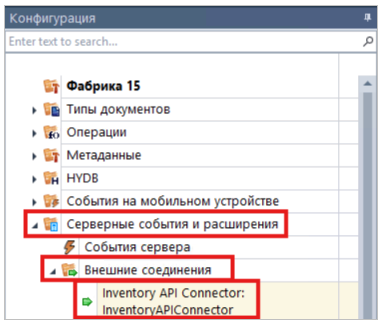 «Серверные события и расширения» - «Внешние соединения» - «Inventory API Connector»
