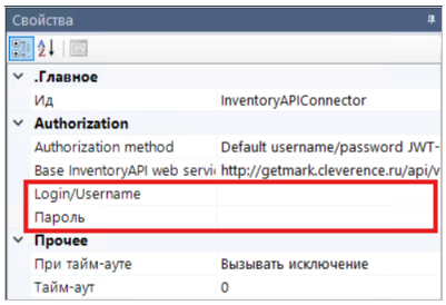 В свойствах заполнить логин в формате ЛОГИН:ИНН (номер телефона:ИНН организации) и пароль для входа в учетную систему GetMark:
