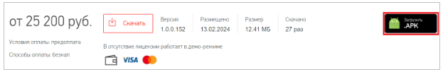 - Откройте страницу продукта в любом браузере на ПК и скачайте установочный файл по кнопке «Загрузить .APK» (также можно найти его в разделе «Загрузки»).