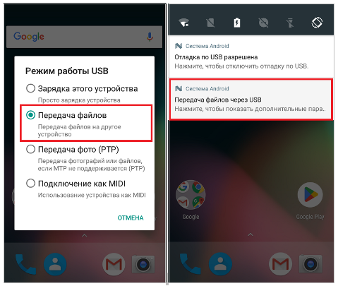 2. Подключите устройство к вашему ПК с помощью USB-кабеля (в режиме «Передача файлов»).