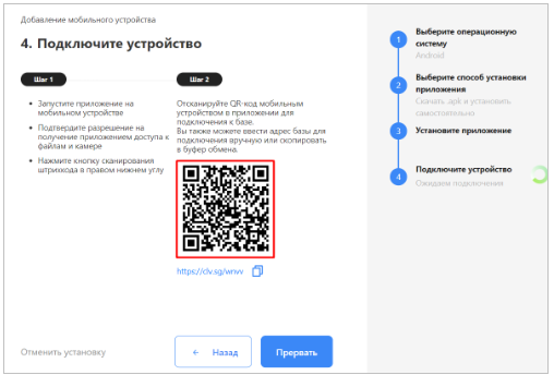 - если на ТСД установлено любое приложение для считывания QR-кодов, откройте его и отсканируйте предложенный код (с помощью фотокамеры);