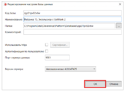 По необходимости смените начальные настройки (Код базы и Папка нельзя будет поменять после установки):