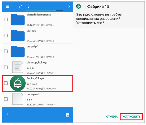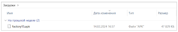 - После того как файл загружен одним из перечисленных способов, найдите его на вашем устройстве (это может быть папка «Мои файлы» / «Проводник» / «Download» / «Загрузки») и запустите установку «Фабрики 15». Выполняйте последовательные шаги, указанные на экране устройства.