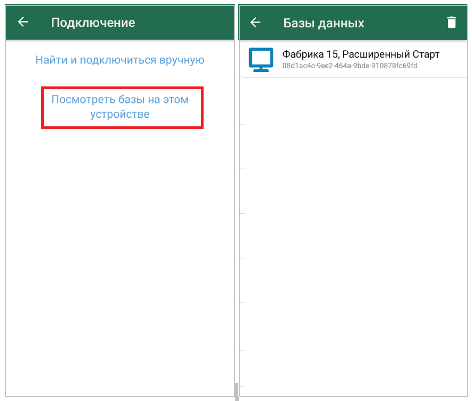 Если устройство уже подключалось к базе «Фабрики 15», можно найти и выбрать ее в списке подключенных баз.